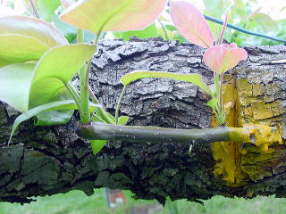 かおり(梨)の枝を果樹に高接木の様子です。