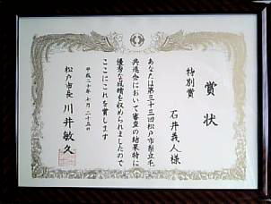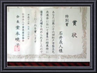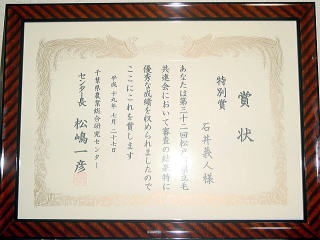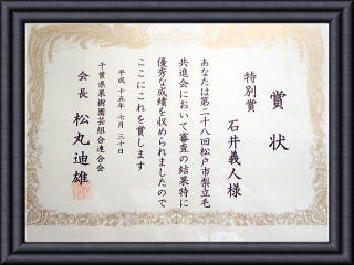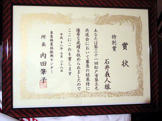 特別賞 平成13年7月26日 第26回 松戸梨立毛共進会 |