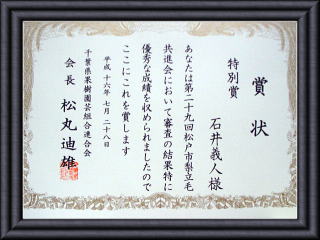 特別賞 3位 平成16年7月28日 第29回 松戸梨立毛共進会 |