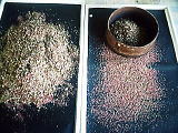ピンク色の葯だけになったら、黒い紙の上に引き詰めます。