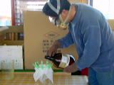 開葯器による花粉を作る作業花粉から美味しい梨を育てます。