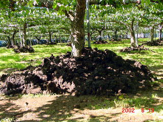 牛糞堆肥を、木の周りにたっぷりと置いています。