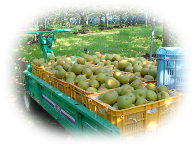 なし狩り(もぎとり)なし園の収穫時期になり、運搬車の荷台に一杯に梨の収穫が楽しみでした。