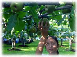 休憩場から梨畑の入口より「 カゴ 」 又は 「 袋 」を持ってなし狩りです。 |