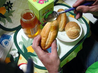 パンに蜂蜜「はちみつ」をたっぷり付けながら食べると美味しいです。