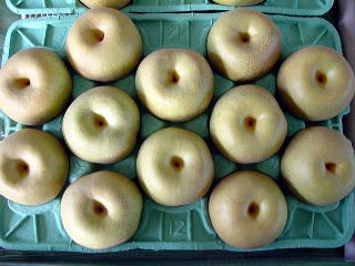 | 梨の箱詰め「果実をパックに詰める作業」 | ||