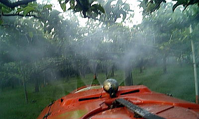 果樹にたっぷりと殺菌剤と殺虫剤を散布を致します。