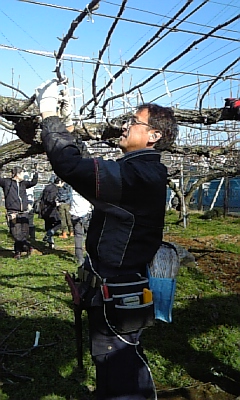 剪定作業が終わり、梨の枝には大きくふくらんだ芽が動き始めています。