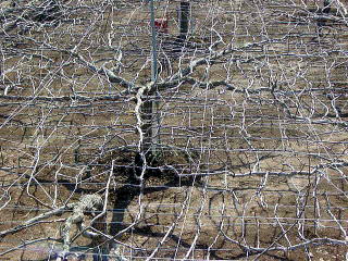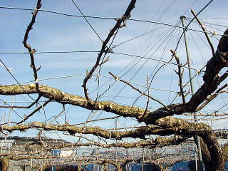 結果枝を梨棚に伸ばし水平にひきつめた様子です。