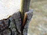 枝を木に差し入れたすき間の部分に接着剤で固定します。