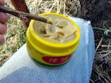 左の写真から見てください。ナイフで切り込みます。