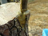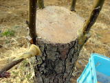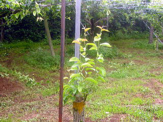 かおり(梨)の枝を接木してから22日間で、新しいく芽が動きはじめています。