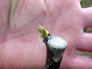 枝先の芽が割れ、芽が動き徒長はじめています。接木作業は大成功 ... !