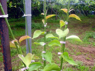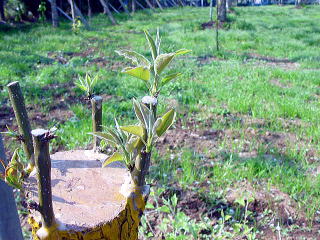 4月中、下旬になると接木した枝芽から枝が出た所を報告致します。