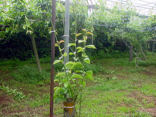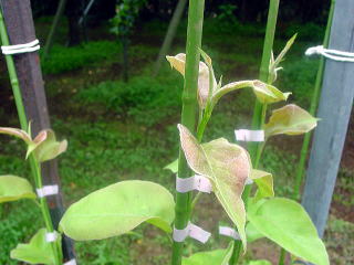 パイプに徒長枝を固定する作業です。