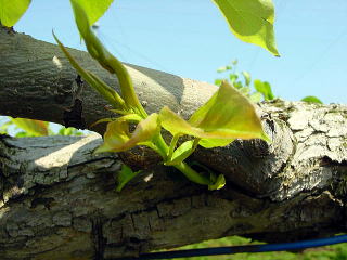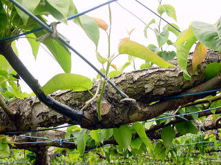 予備枝は、太い結果枝の下部分から新しい芽から育てる。